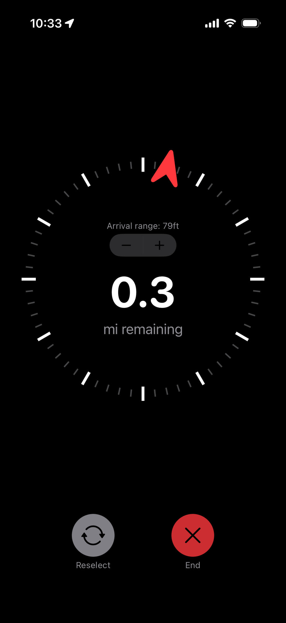 By turning the Digital Crown, you can adjust the arrival detection distance. For large destinations or places set back from the road, increasing the distance allows you to be recognized as having arrived.